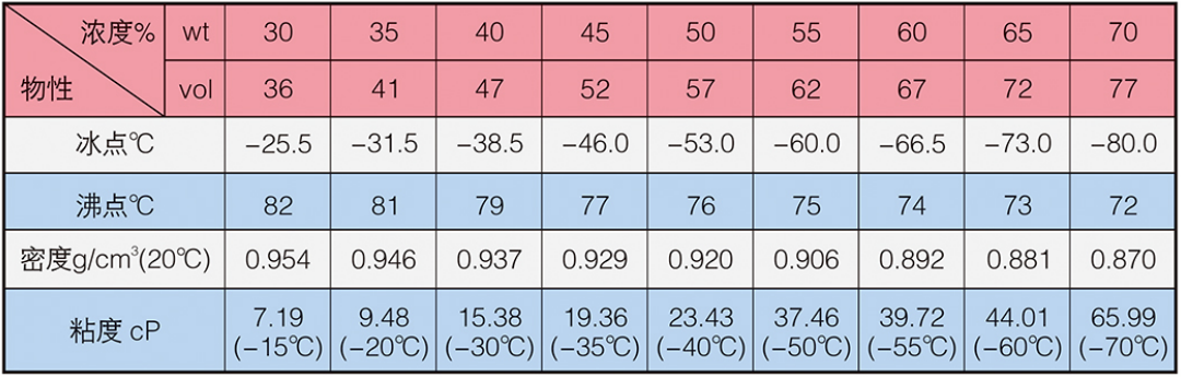LM-1型冰河冷媒由一元醇改性構(gòu)成,主要添加劑包括防腐蝕劑,防霉劑,增溶劑等。外觀為淺色液體。20℃時,原液密度為0.850~0.860g/cm°,粘度為1.25mPa·s(cP),比熱為0.603ca/g:℃熱導(dǎo)率為0.26W/m·K。沸點(diǎn)高于60℃,冰點(diǎn)低于-100℃,閃點(diǎn)為16℃。